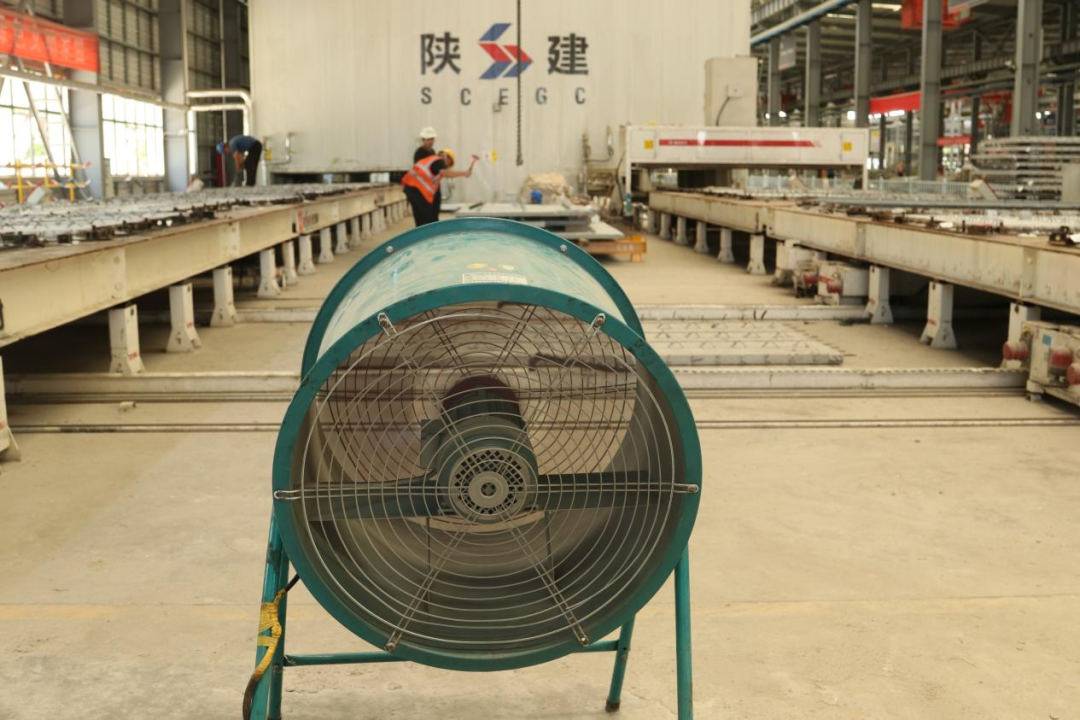 经过烈日暴晒,生产车间里到处热气蒸腾,在构件蒸养、焊接等工位附近,更是直面高温烘烤,仿佛置身于一个巨大的桑拿房中。