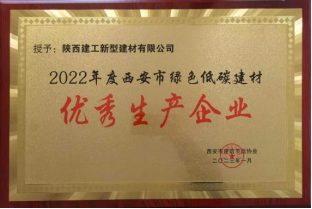 陕西建工新型建材有限公司荣获“2022年度西安市绿色低碳建材优秀生产企业”“2022年度西安市建筑业绿色高质量发展先进企业”荣誉称号;