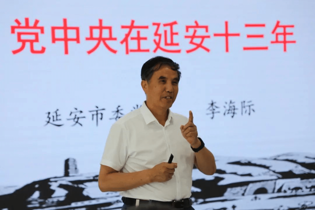 中共延安市委党校、延安干部培训学院教授李海际以《党中央在延安十三年》为题,声情并茂、情真质朴地讲述了党中央在延安的13年里艰苦卓绝的革命斗争史。他从西北革命根据地的创建、党中央在延安十三年的光辉历程、延安十三年的历史地位和贡献三个方面,生动揭示了伟大革命的推进、毛泽东思想的成熟、中央领导集体的形成、局部执政经验的积累及伟大延安精神的培育,使大家对党中央在延安进行的革命有了深刻的认知,获益匪浅。