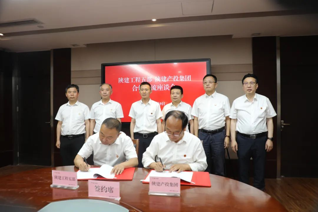 6月9日,陕建产投集团与陕建工程五部签署了战略合作协议,双方将深化合作关系,携手推进项目落地,共谋发展。陕建产投集团董事长、党委副书记付超锋,陕建工程五部总经理、党总支副书记张强等领导鉴签,陕建产投集团副总经理卢远瞩、陕建工程五部副总经理关林辉代表双方签约。