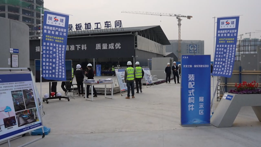 本次观摩会中,陕西建筑产业投资集团以新能源配套装配式建筑体系、装配式市政建筑体系、装配式住宅建筑体系、装配式公共建筑体系、装配式装修体系、装配式地下空间结构体系、装配式建筑光伏一体化箱房等七大体系亮相观摩会,从市政公建到商品住宅,从主体结构到室内装修,从PC产品到花岗岩石材,各个产业链条产品体系相互融合支撑,全方位展现了集团建筑全产业链服务实力和在新型建筑工业化生产建造领域的优秀成果。