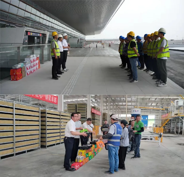 集团副总经理刘海生赴机场供货项目一线,与华山路桥集团共同开展送清凉慰问活动。同时,走进免拆保温模板基地开展慰问活动,亲切地询问了职工们工作与生活情况,叮嘱他们高温作业要注意劳逸结合,做好防暑降温工作,在保证安全生产的同时做好自我防护,确保以更好的状态投入到工作中。