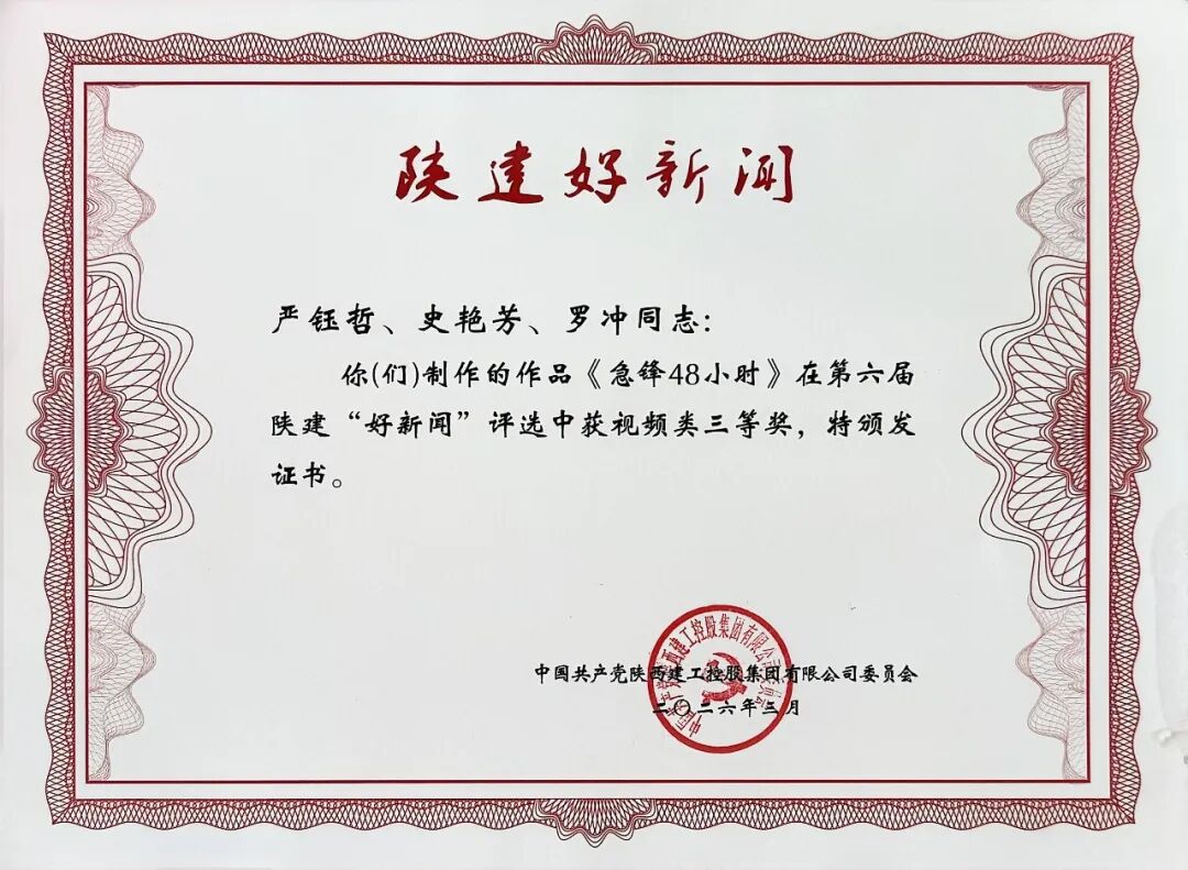 近日,陕建控股集团2026年宣传思想文化暨统一战线工作会议圆满召开,陕建产投集团宣传工作再获表彰奖励。集团宣传作品从39家报送单位、299项作品中脱颖而出,自制微短剧作品《急锋48小时》荣获陕建好新闻视频类三等奖。