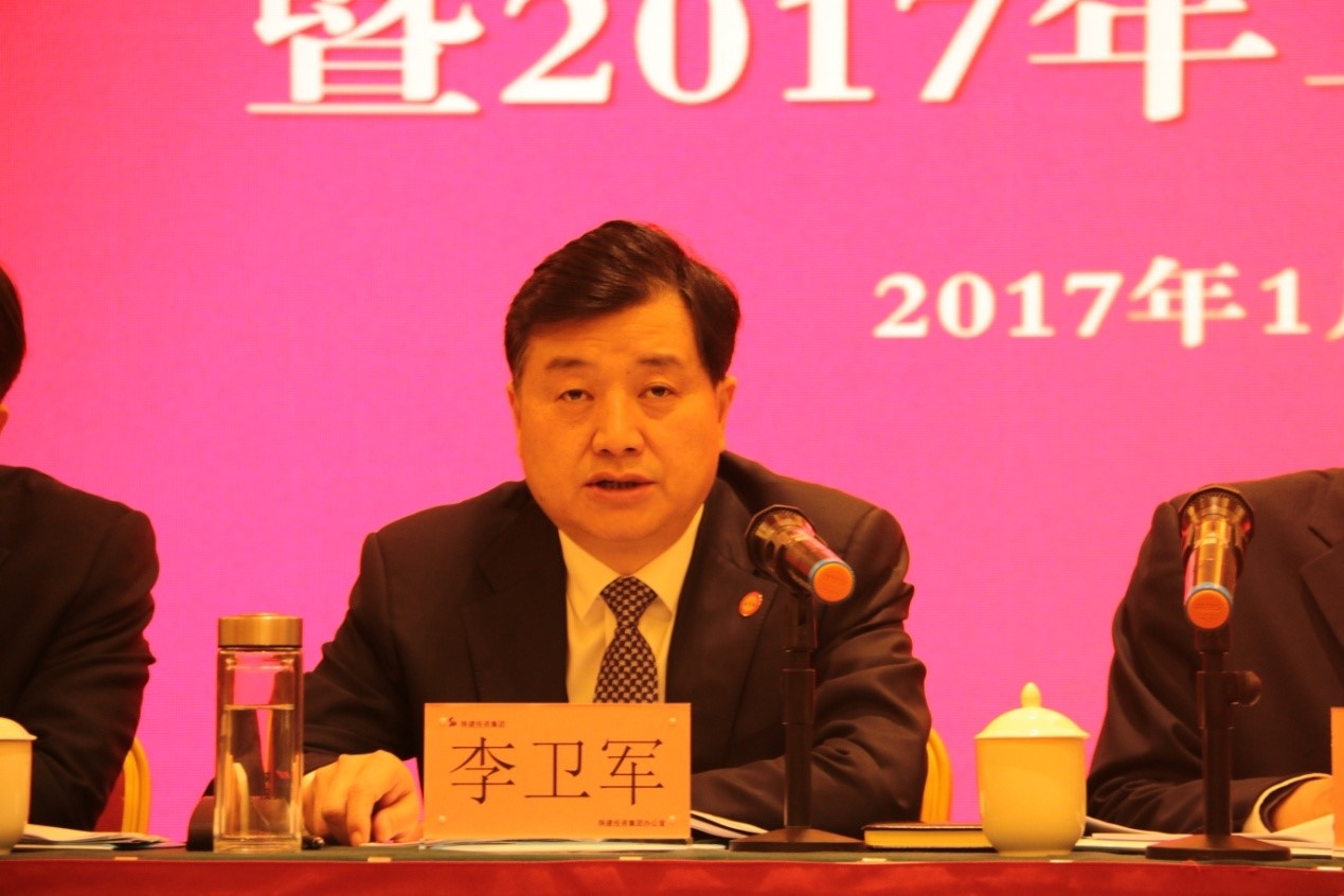 李卫军首先简要回顾了集团2016年的工作。他说,盘点2016年,集团上下振奋精神,鼓足干劲,扎实工作,求真务实,主动作为、逆势扬帆,取得了全面发展的优异成绩单。一年来,西咸、韩城、延安产业园区建成投产;融资租赁公司挂牌正式运营;完成投资7亿元,实现年计划的100%;全年投入科技资金103.57万元;集中采购率100%;标前评审、合同评审100%;使用专项合同文本率100%;陕建品牌视觉统一标识覆盖率100%;推行全面预算管理制度、建立风险防控;注重对标工作;获得第12届中国国际建筑节能及新型建材展最佳创意展示奖;获得陕建建筑产业化推进先进单位;成为中国金属协会钢结构分会会员单位、陕西省绿色建筑产业技术创新战略联盟副理事长单位;人均收入达到7.3万元,并代表集团领导班子向全体建投人及家属表示衷心的感谢和崇高的敬意!