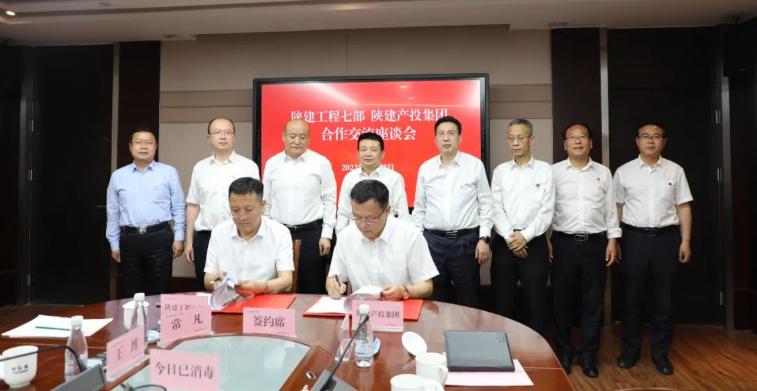 5月18日,陕建产投集团与陕建工程七部签署战略合作协议。陕建产投集团董事长、党委副书记付超锋,陕建工程七部党总支书记、副总经理高峻等领导鉴签,陕建产投集团总经理吴常明、陕建工程七部总经理刘东代表双方签约。