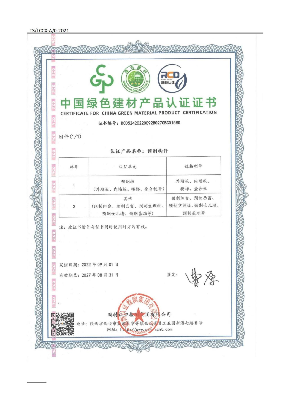 近日,陕建新型建材公司预制构件产品荣获“中国绿色建材产品认证”最高级别---三星级标准认证证书。