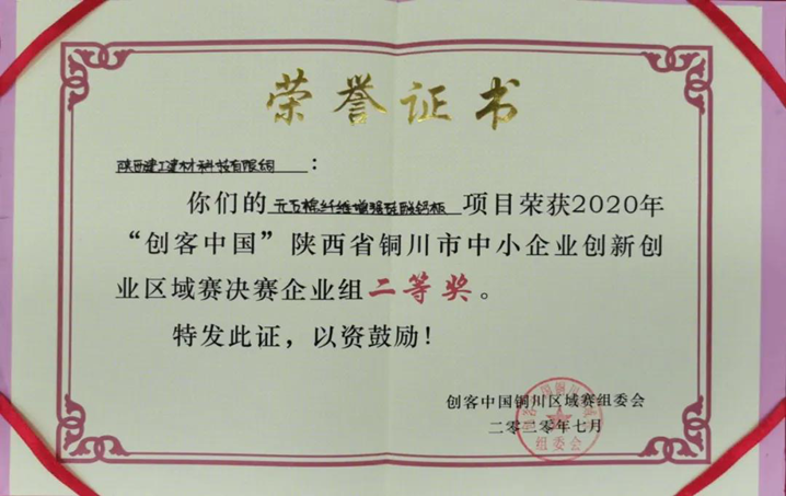 近期,陕建建材科技公司在2020年“创客中国”陕西省铜川市中小企业创新创业区域赛企业组决赛中获得了二等奖的佳绩。