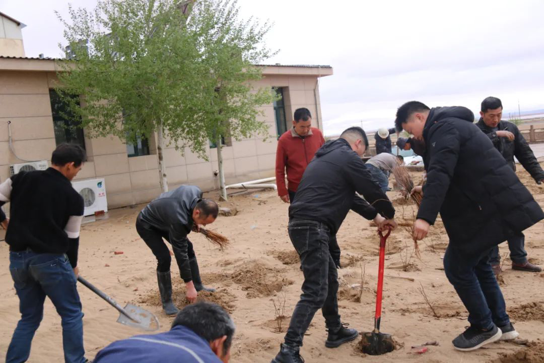 近日,内蒙陕建矿业公司借助阴雨天气的绝佳时机,组织员工以义务植树的方式迎接即将到来的“五一”国际劳动节,来自车间、部室近20人栽种花棒苗3000株,为家园新增绿意。