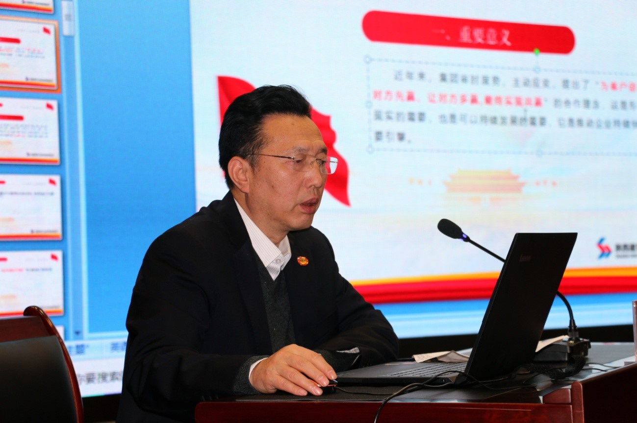 王拯民对弘扬爱国奋斗精神、践行合作共赢理念进行了全面宣贯。首先,他传达了陕建和投资集团两级党委关于“弘扬爱国奋斗精神,建功立业新时代”“践行合作共赢理念”的实施方案。其次,他以生动的语言、鲜活的事例重点对陕建集团提出的“为客户创造价值、让对方先赢、让对方多赢、最终实现共赢”的合作共赢理念和“四五”要求进行了详细的解读,并谈了自己的体会和认识。最后,他对如何深入贯彻落实以上精神提出了三点要求:一是要深入学习,领会精髓。要改变工作思维,创新工作方法,把个人理想自觉融入企业发展和社会进步中去,不断适应经济发展新常态,突破发展瓶颈。二是把握关键,有序推进。要对中省、陕建党委和集团党委的决策部署学懂吃透、了然于胸、融会贯通,把落实活动要求与本单位组织建设、企业文化建设工作有机结合。三是强化宣传,营造气氛。要深刻认识上述活动的重大意义,提高宣传的针对性、实效性,发挥先进典型的示范作用,广泛宣传好的做法和活动成效,营造良好的舆论氛围,不断将学习和践行活动引向深入,为实现陕建集团“五年两步走”战略目标和集团公司“三年两步走” 战略目标不懈奋斗、建功立业。