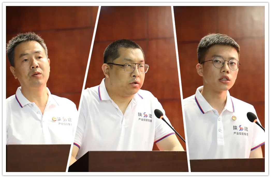 集团新员工代表毋群焰、张鑫、陆佳熠做表态发言。