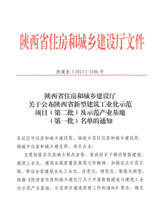 会上,付涛宣读了《关于公布陕西省新型建筑工业化示范项目(第二批)及示范产业基地(第一批)名单的通知》,其中,陕西建筑产业投资集团新型建材公司、装配智造公司入选陕西省第一批新型建筑工业化示范产业基地。