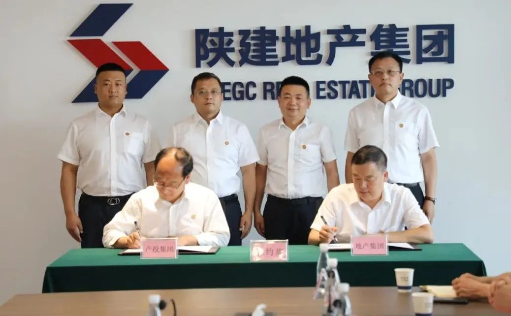 5月24日,陕建产投集团与陕建地产集团签署战略合作协议。陕建产投集团董事长、党委副书记付超锋,陕建地产集团董事长、党委书记刘德峰等领导鉴签,陕建产投集团副总经理卢远瞩、陕建地产集团副总经理霍思定代表双方签约。