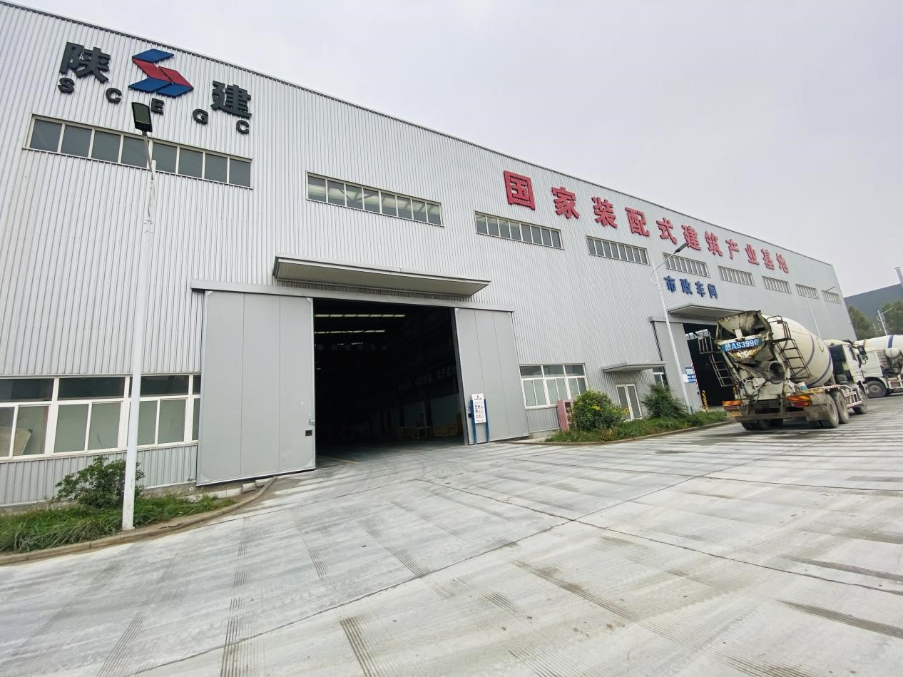 在位于陕西省西安市秦汉新城的陕建新型建材公司生产车间内,一派热火朝天的繁忙景象:从事钢筋绑扎、混凝土布料、蒸养、倒运等工作的工人们头顶安全帽干劲十足,作业台上机械臂左右开弓,场内运输车往来穿梭,人声与机器转动声相互交织,汇成了一首铿锵有力的生产进行曲。